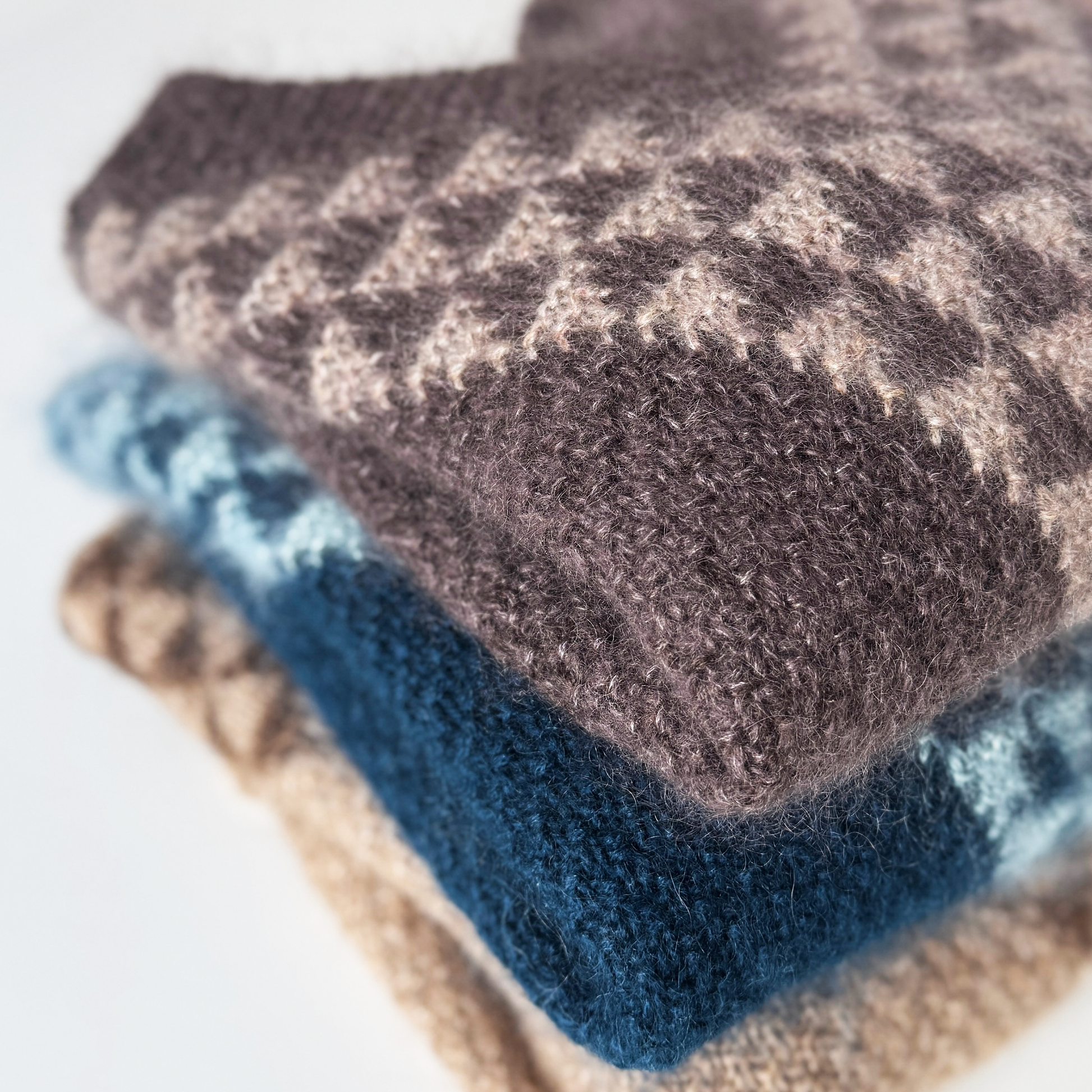 • Alpaca 2, Isager (250m/50g) and Soft Fine, Isager (150m/25g) - One strand of each: Primary col., yarn A: 200 (200) 200 (250) 250 (250) 300g Alpaca 2 and 150 (150) 175 (175) 200 (200) 250g Soft Fine. For each contrast col., yarn B and C: 50g Alpaca 2 and 25g Soft Fine.
