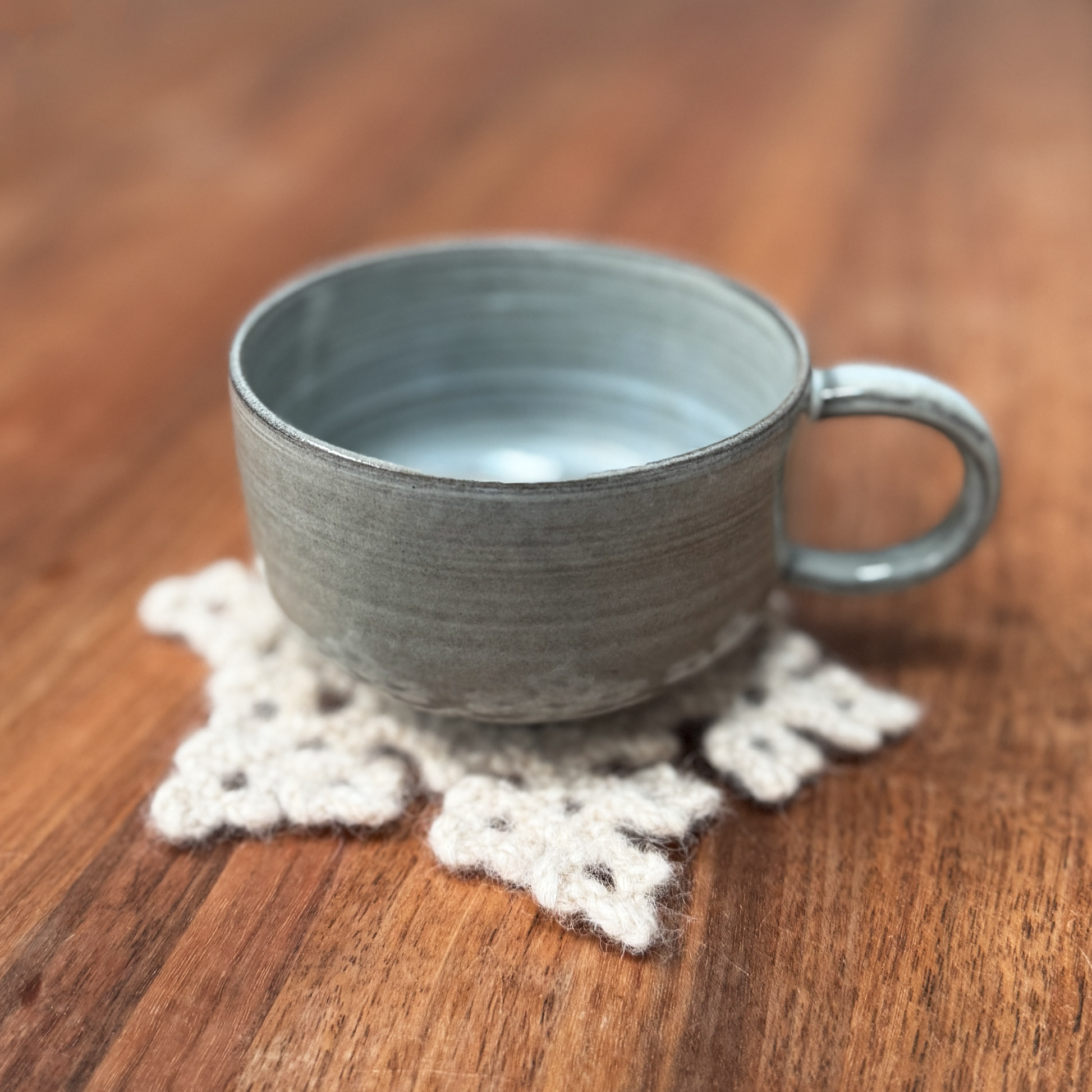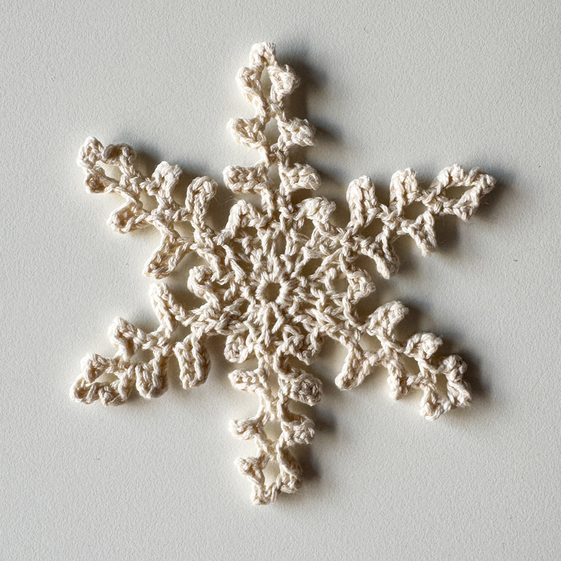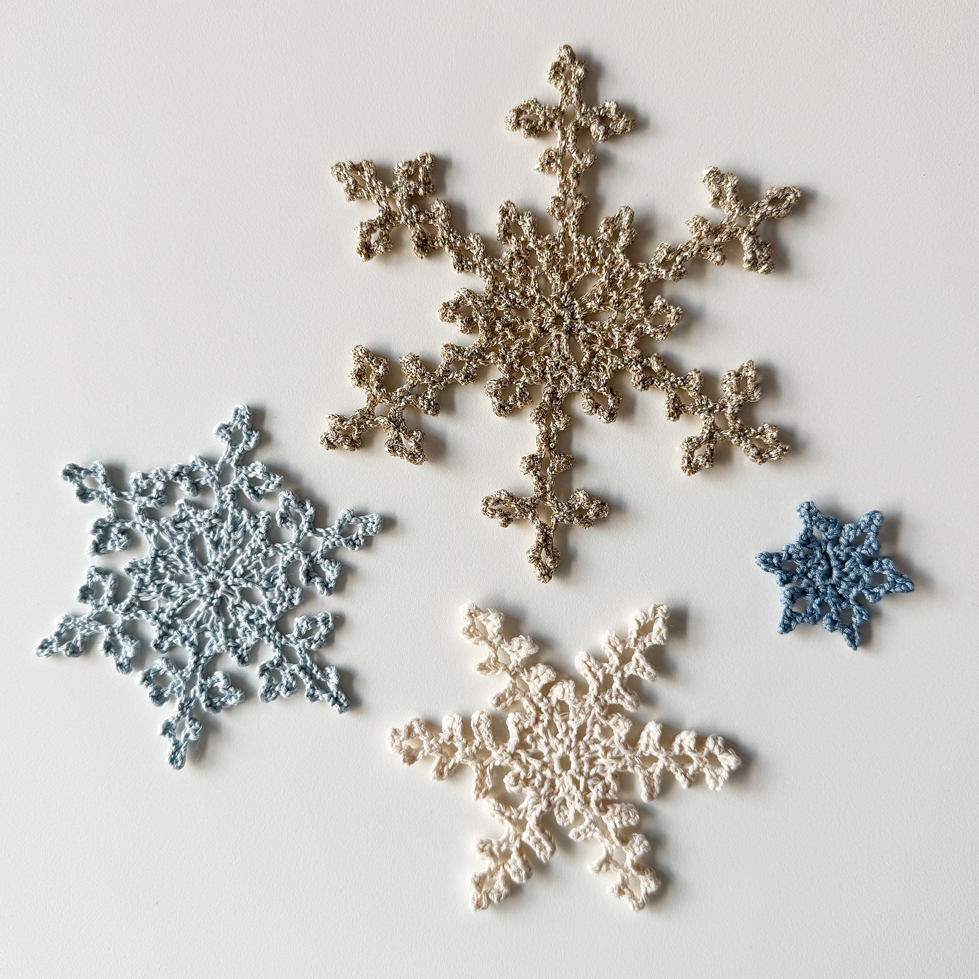 Four variants of knitted snowflakes that can decorate windows, trees or the Christmas table.